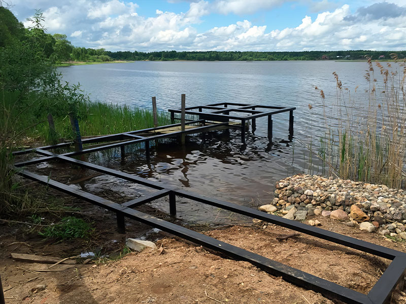 Сваи и материалы для монтажа доставляются на участок, выгружаются вручную или манипулятором. Участок размечается, обозначаются точки бурения в соответствии с подготовленным проектом.